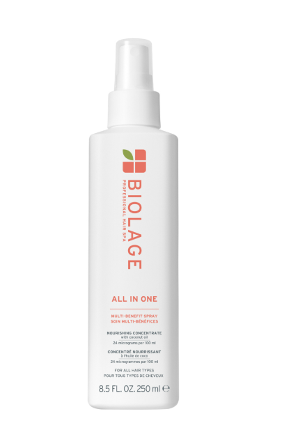 250MLAll-In-One Multi-Benefit Spray, our ultimate primer for all hair types, is a lightweight fast-absorbing leave-in spray that delivers heat protection, shine, softness, smoothness, frizz control, lightweight hydration, manageability and so much more, keeping your strands looking and feeling their best. All-in-One Multi-Benefit Spray is infused and micro-dosed with a nourishing concentrate of pressed coconut oil, precisely calibrated down to the microgram to create the perfect amount of conditioning, smoothness and shine for soft, touchable strands.
